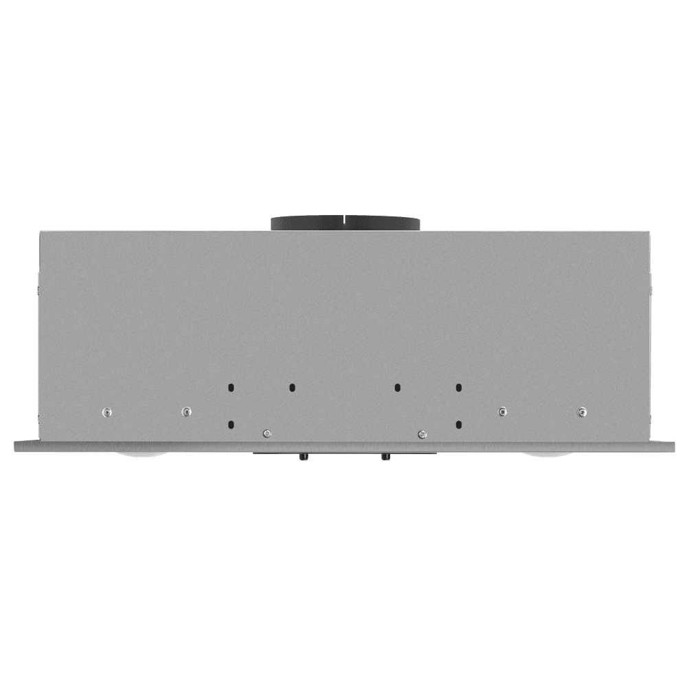 Вытяжка устанавливается в шкаф или в потолочную нишу — таким образом все соединительные элементы и корпус оказываются скрыты. Это подходящий вариант для небольшого помещения, если нужно максимально освободить пространство, а также необходимость, если вы продумываете кухонный дизайн до мелочей.