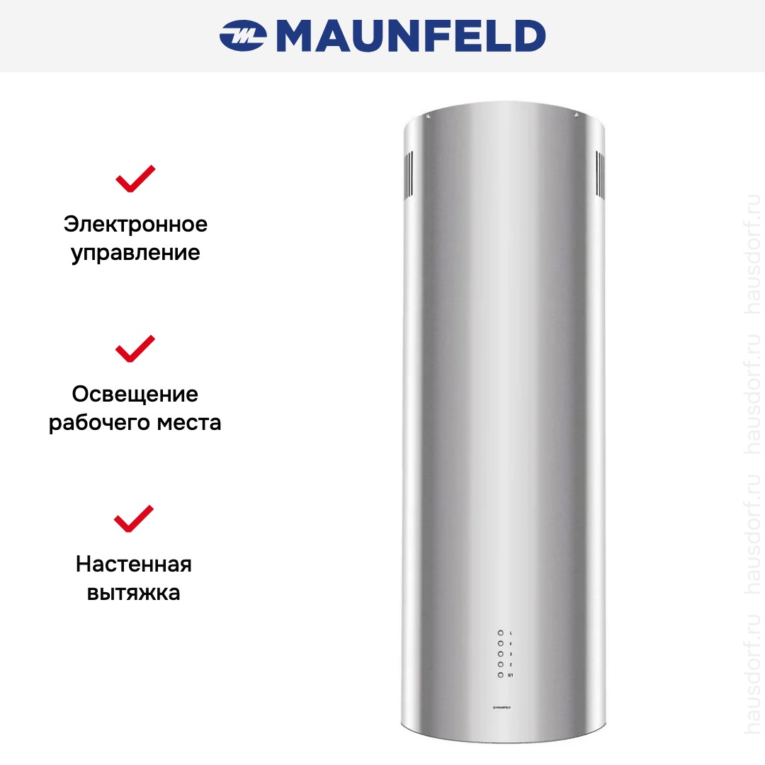 Крепление вытяжки к стене — стандартное для многих моделей, ими удобно управлять, так как кнопки находятся на расстоянии вытянутой руки. Обратите внимание на цветовые сочетания модели Maunfeld Lee Wall 39 Long inox, чтобы органично вписать ее в свою квартиру. Оттенок корпуса: нержавеющая сталь. Благодаря лампочкам, которые расположены на нем, можно освещать плиту и столешницу рядом, чтобы готовить было еще проще и приятнее.