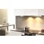 Вытяжки, встраиваемые в столешницу — эффективная инновация, которая подойдет для установки в кухне любой площади. Такие вытяжки размещаются за варочной поверхностью или рядом с ней. В отключенном состоянии всасывающая панель находится под столешницей, но после включения одной или нескольких конфорок она автоматически выдвигается при помощи специального лифтового механизма. Загрязненный воздух улавливается, не успевая распространиться по помещению. Когда вытяжка убрана, на виду остается только сенсорная панель управления. Недостатком подобных моделей является только сравнительно высокая цена.