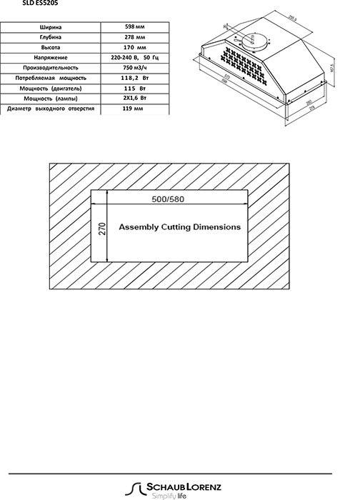 Встраиваемая вытяжка — выбор тех, кто хочет максимально задекорировать технику, или владельцев маленькой кухни. Тип встраивания: в шкаф. Обратите внимание на цветовые сочетания модели Schaub Lorenz SLD ES5205, чтобы органично вписать ее в свою квартиру. Оттенок корпуса: черный. Благодаря лампочкам, которые расположены на нем, можно освещать плиту и столешницу рядом, чтобы готовить было еще проще и приятнее.