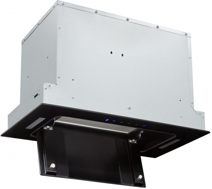 Вытяжка, встраиваемая в потолок, часто устанавливается над кухонным островом в просторной кухне и отличается достаточно высокой мощностью: она может работать как в режиме рециркуляции, так и в режиме отвода, так как воздуховод также скрыт в потолке. Вытяжки могут монтироваться в подвесной потолок либо устанавливаться в специальные многоярусные конструкции из гипсокартона непосредственно во время ремонта кухни. Для управления ими используется пульт ДУ.
