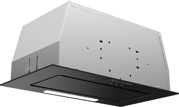 Вытяжки, встраиваемые в столешницу — эффективная инновация, которая подойдет для установки в кухне любой площади. Такие вытяжки размещаются за варочной поверхностью или рядом с ней. В отключенном состоянии всасывающая панель находится под столешницей, но после включения одной или нескольких конфорок она автоматически выдвигается при помощи специального лифтового механизма. Загрязненный воздух улавливается, не успевая распространиться по помещению. Когда вытяжка убрана, на виду остается только сенсорная панель управления. Недостатком подобных моделей является только сравнительно высокая цена.