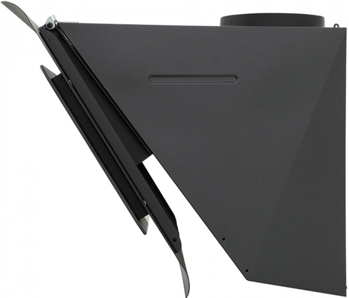 Вытяжки с наклонной фронтальной панелью позволяют освободить пространство над варочной панелью, при этом мощность забора воздуха не страдает от конфигурации модели. Такими вытяжками удобно управлять, так как кнопки обычно находятся спереди, доступ к ним максимально облегчен. Зачастую есть всасывание по периметру.