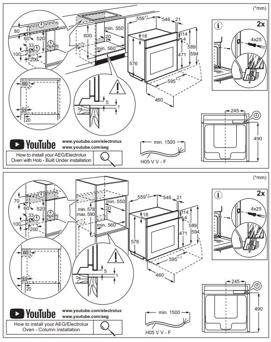 AEG NBA5C43AK - схема с размерами версия 2 к духовому шкафу на разных языках на Hausdorf