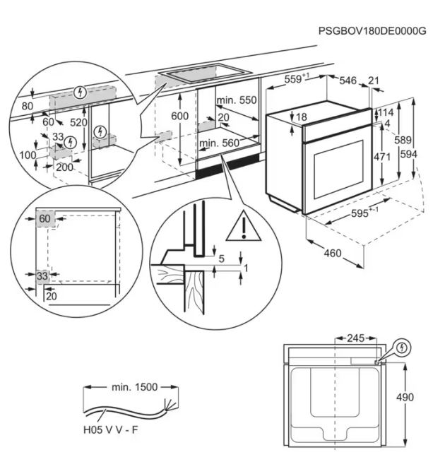 AEG TP8SB731AT - схема с размерами к духовому шкафу на разных языках на Hausdorf