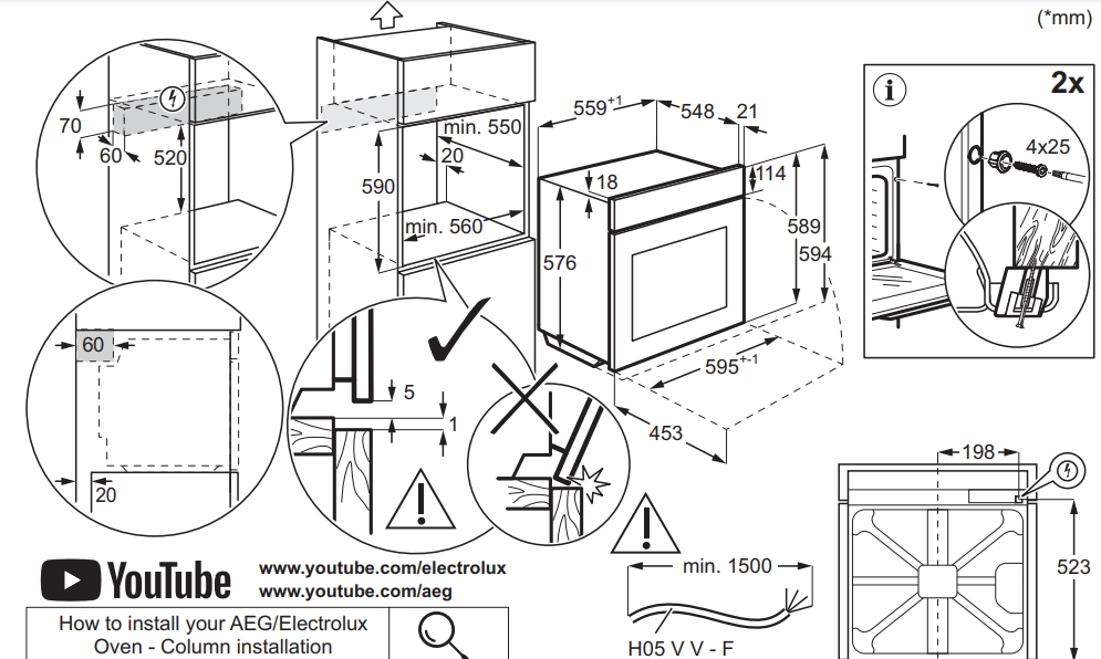 Electrolux LOE8P39Z - схема с размерами версия 3 к духовому шкафу на разных языках на Hausdorf
