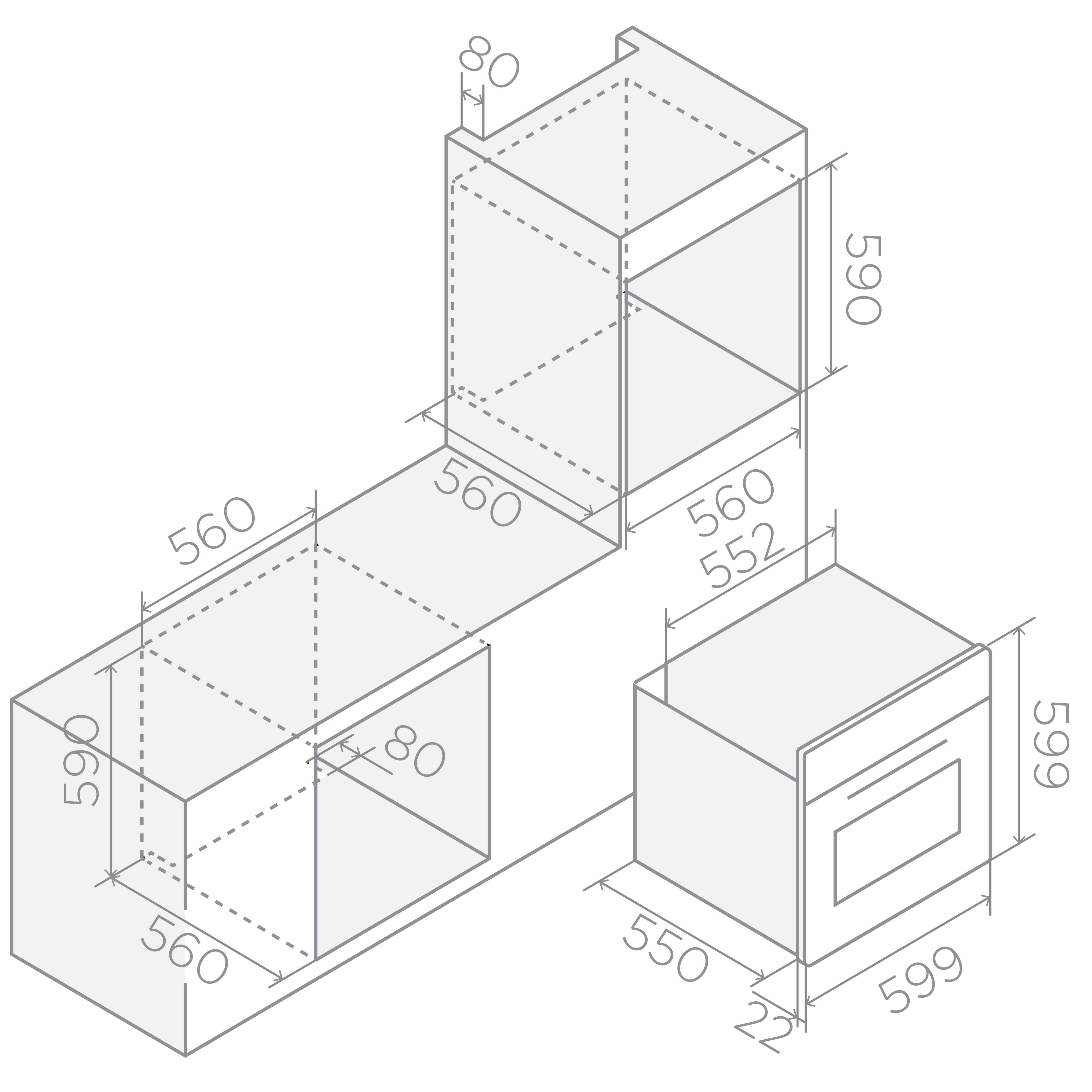 Elica Virtus Multi DD - схема с размерами к духовому шкафу на разных языках на Hausdorf