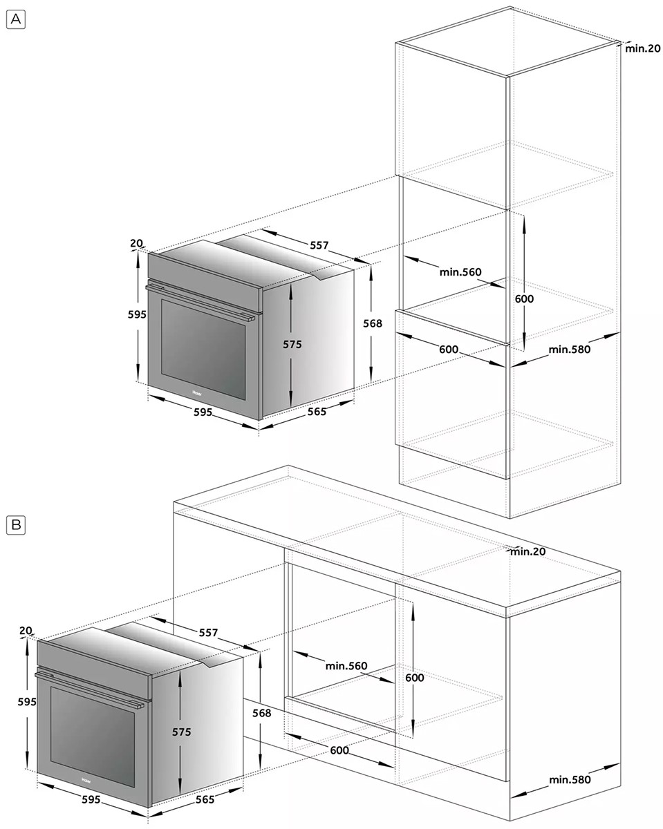 Haier HOQ-K2ANN3WB - схема встраивания к духовому шкафу на разных языках на Hausdorf