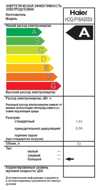 Haier HOQ-P16AS5SX - энергетическая наклейка к духовому шкафу на разных языках на Hausdorf