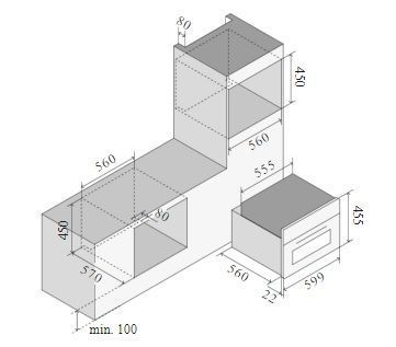 Ilve 645SNHSW/MGC - схема встраивания для 645SNHSW/MGC к духовому шкафу на разных языках на Hausdorf