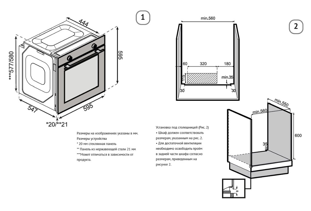 Korting OKB 3810 FGN - схема с размерами версия 2 к духовому шкафу на разных языках на Hausdorf