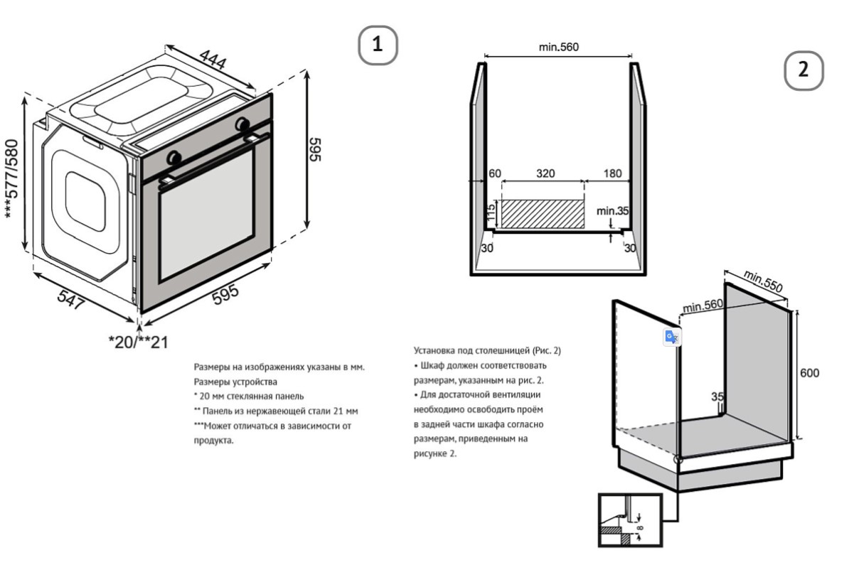 Korting OKB 51041 CEGW - схема с размерами версия 2 к духовому шкафу на разных языках на Hausdorf