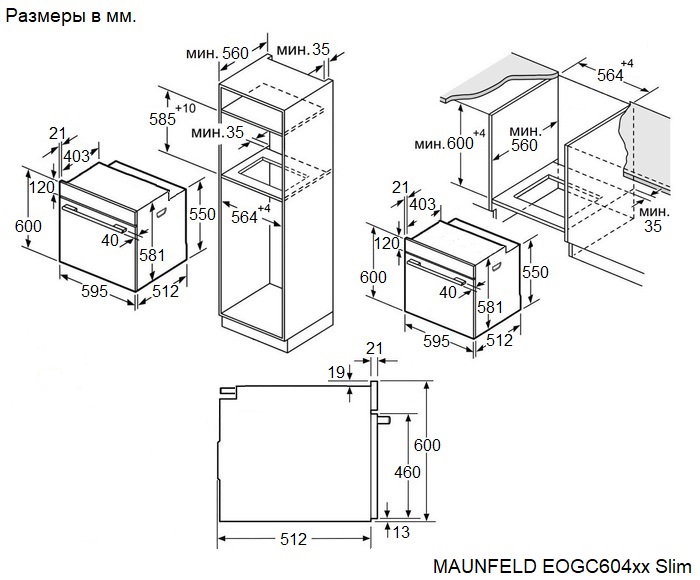 Maunfeld EOGC604B Slim - схема с размерами к духовому шкафу на разных языках на Hausdorf