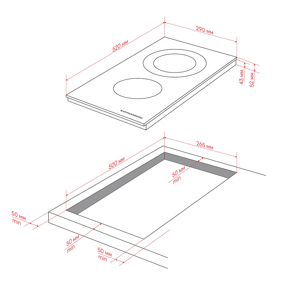 Kuppersberg ECO 322 - схема встраивания к варочной панели на разных языках на Hausdorf
