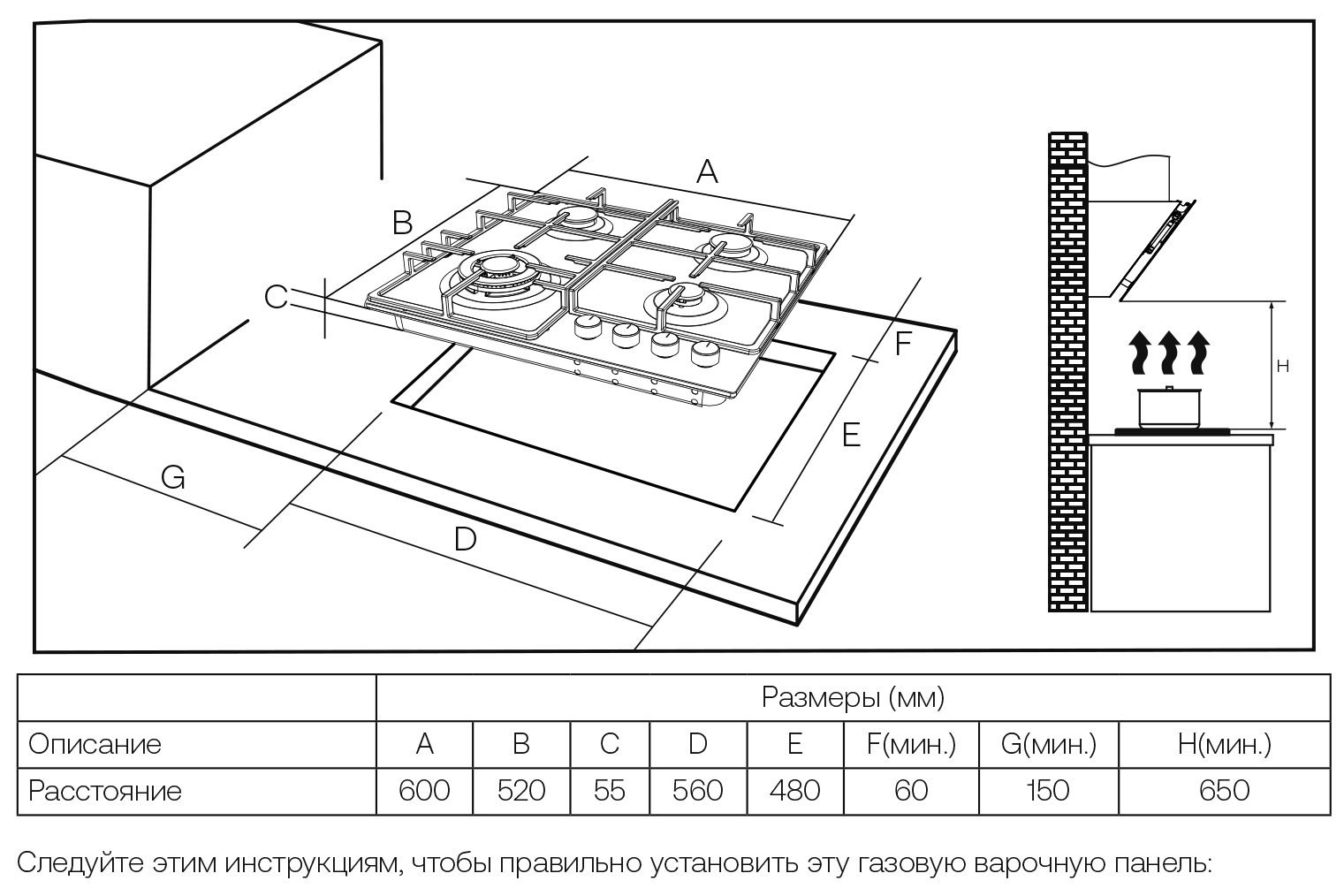 Haier HHQ-M64CAQX - схема встраивания к варочной панели на разных языках на Hausdorf