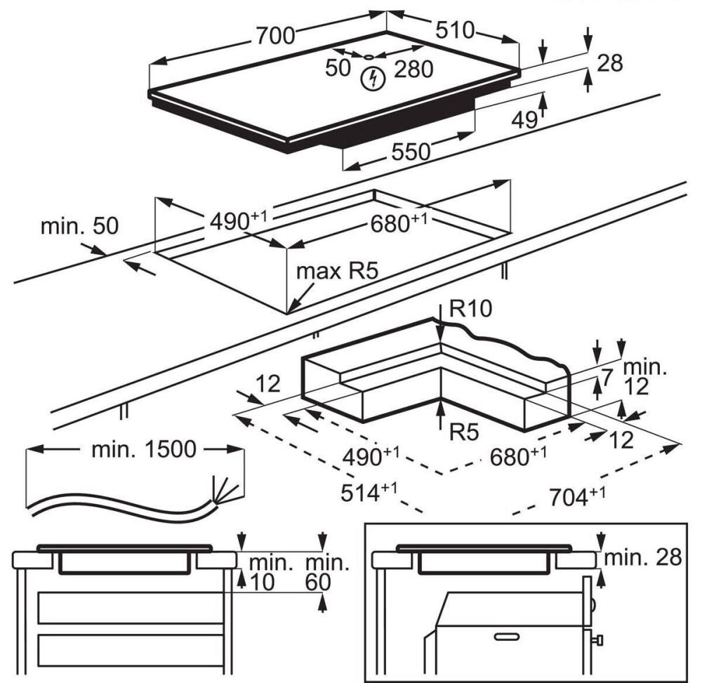 AEG TI74IF00IB - схема с размерами к варочной панели на разных языках на Hausdorf