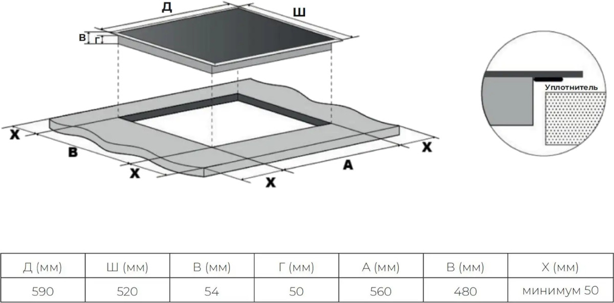 Haier HHK-Y64TB - схема встраивания к варочной панели на разных языках на Hausdorf