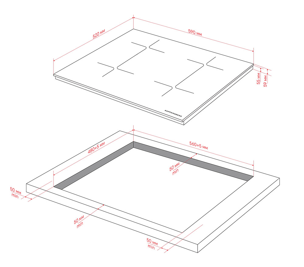 Kuppersberg ICI 626 - схема встраивания к варочной панели на разных языках на Hausdorf