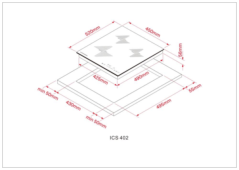 Kuppersberg ICS 402 - схема с размерами к варочной панели на разных языках на Hausdorf
