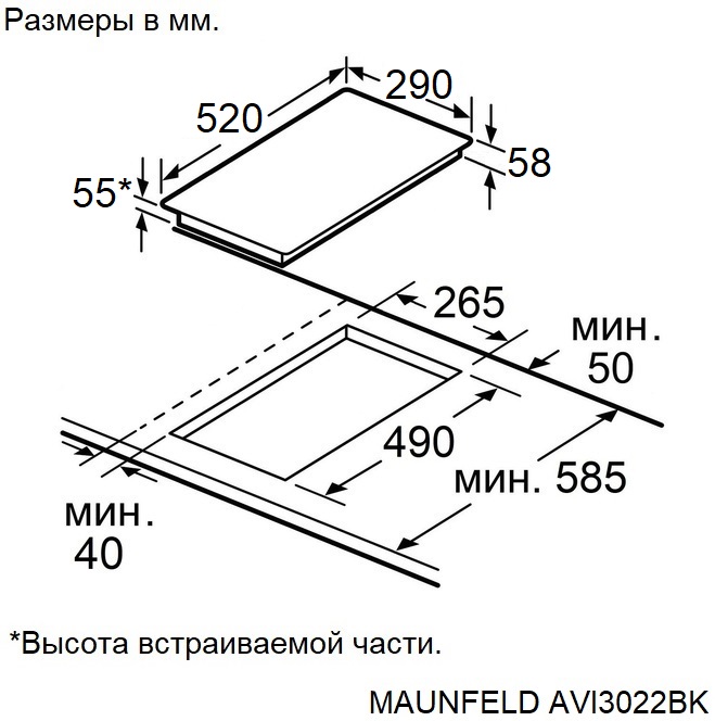 Maunfeld AVI3022BK - схема с размерами к варочной панели на разных языках на Hausdorf