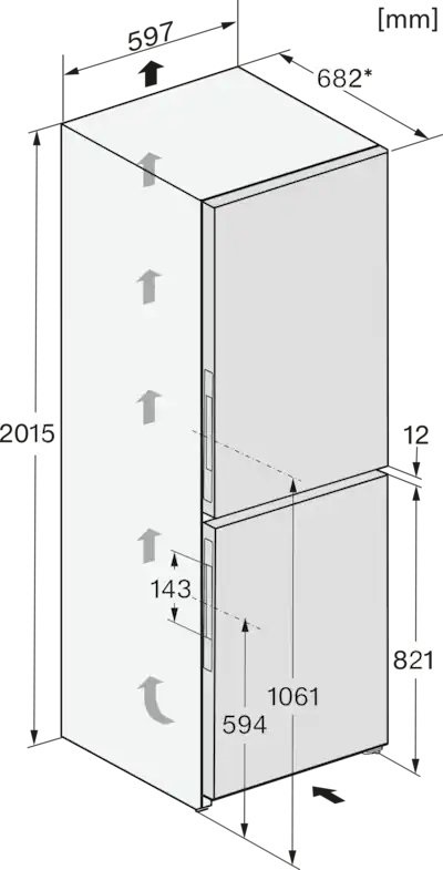 Miele KFN 4795 CD Blackboard - схема с размерами к холодильнику на разных языках на Hausdorf