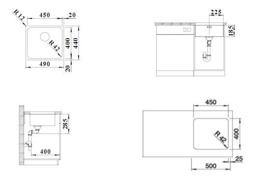 Сохранить файл: Схема с размерами к Blanco SOLIS 450-U 526120.JPG, 21.09 Кб