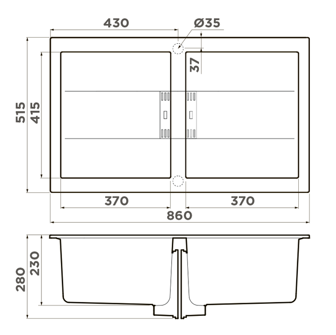 Сохранить файл: Схема с размерами к Omoikiri Banzen 86-2 GR.JPG, 57.21 Кб