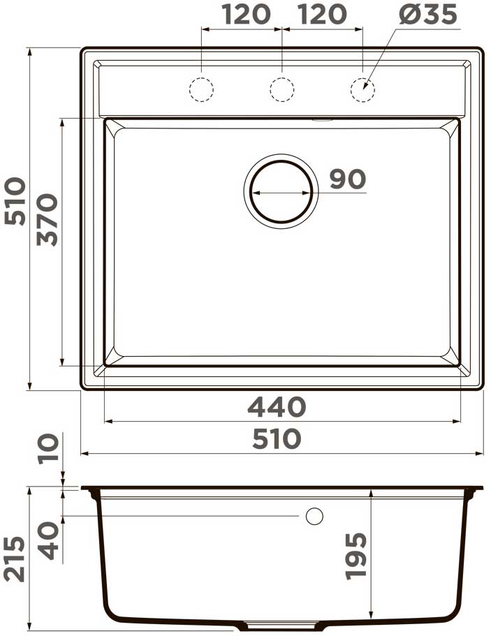 Сохранить файл: Схема с размерами к Omoikiri Daisen 51-PA.JPG, 46.65 Кб
