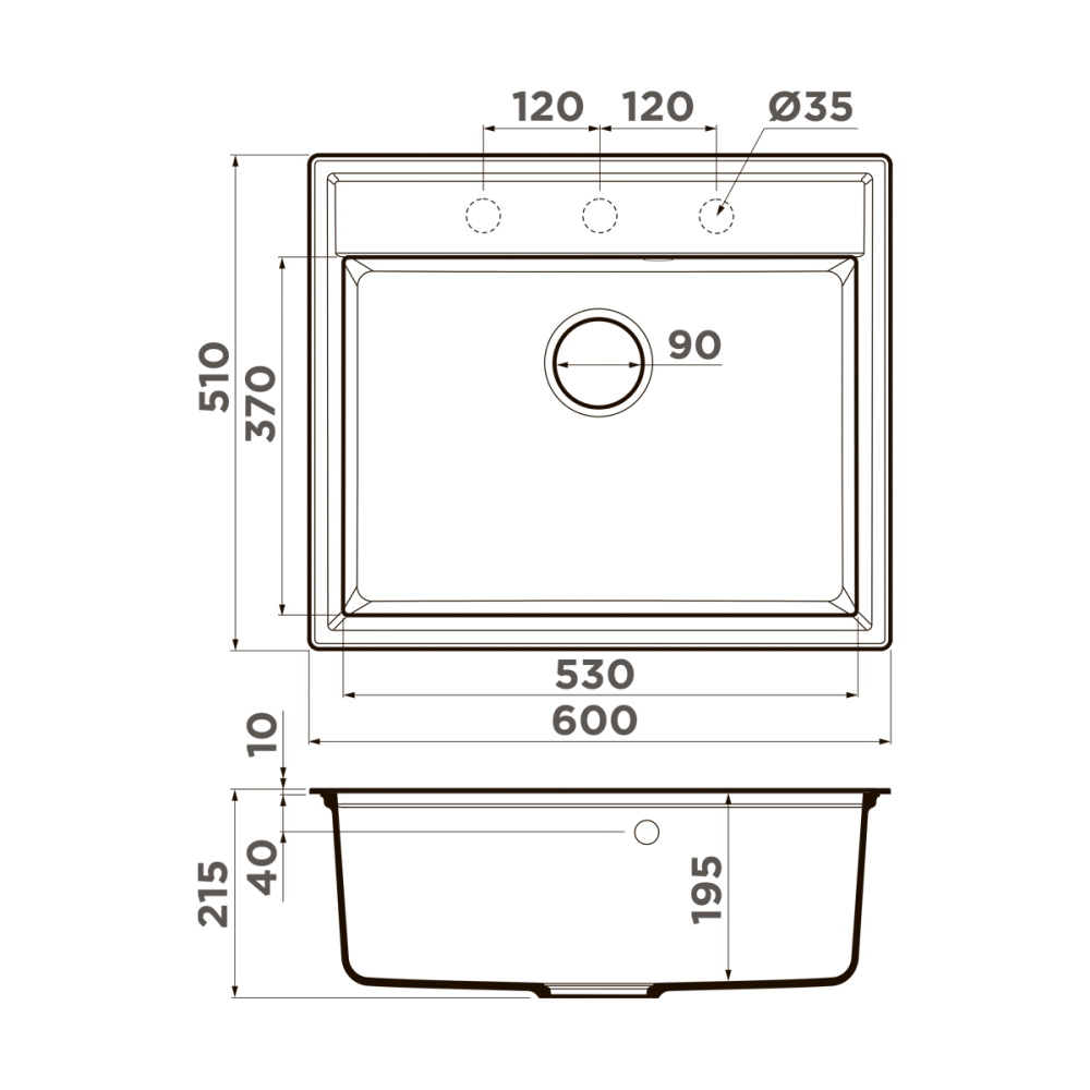 Omoikiri Daisen 60-WH - схема с размерами версия 2 к мойке на разных языках на Hausdorf