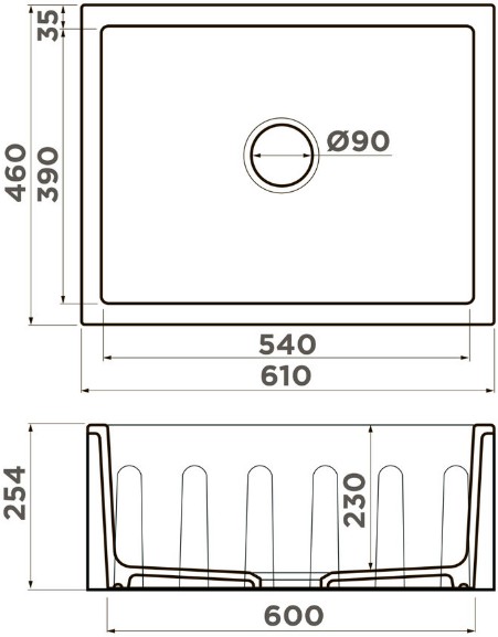 Сохранить файл: Схема с размерами к Omoikiri Mikura 61 PE.JPG, 40.05 Кб