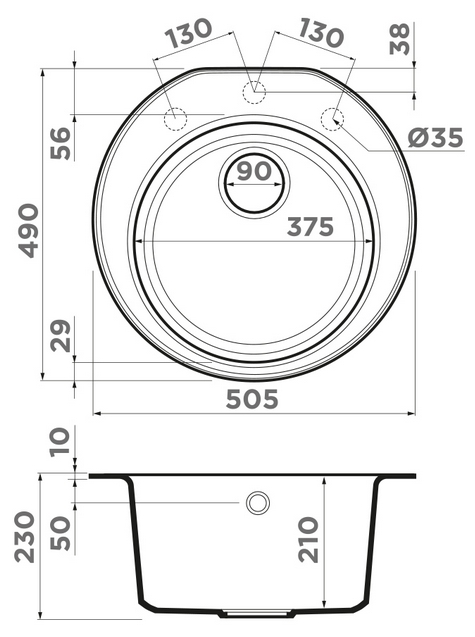 Omoikiri Miya 50R GR - схема с размерами к мойке на разных языках на Hausdorf