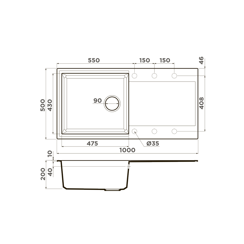 Сохранить файл: Схема с размерами к Omoikiri SAKAIME 100 PL.PNG, 69.83 Кб