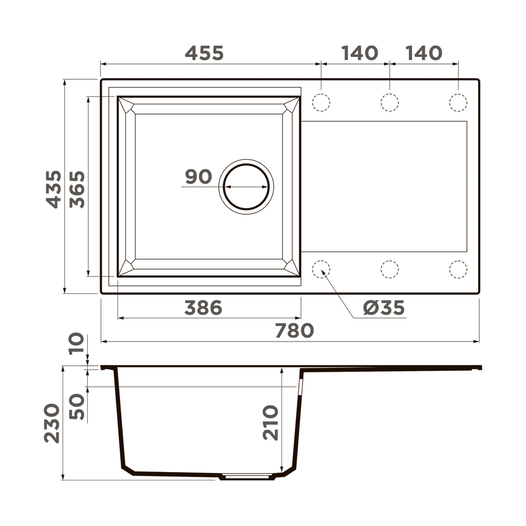 Сохранить файл: Схема с размерами к Omoikiri SAKAIME 78 SA.PNG, 134.84 Кб