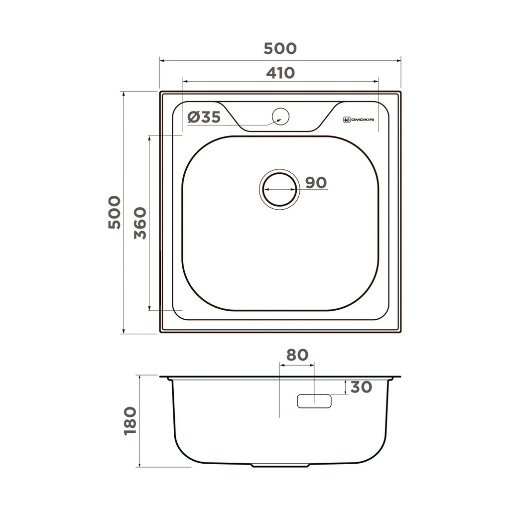 Omoikiri SARU 50-IN - схема с размерами к мойке на разных языках на Hausdorf