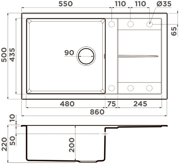 Сохранить файл: Схема с размерами к Omoikiri SUMI 86A WG.JPG, 45 Кб