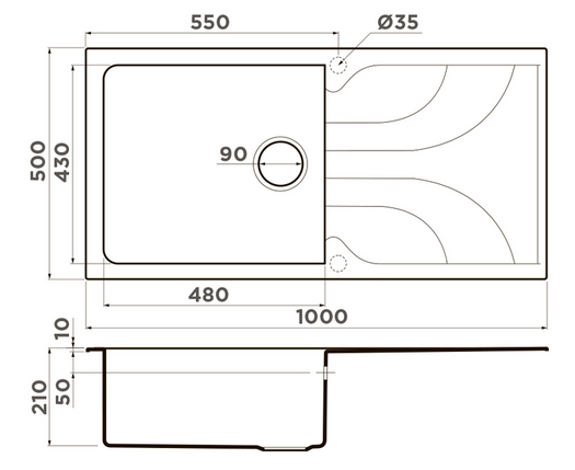 Сохранить файл: Схема с размерами к Omoikiri YASUGATA 100 PL.JPG, 60.75 Кб