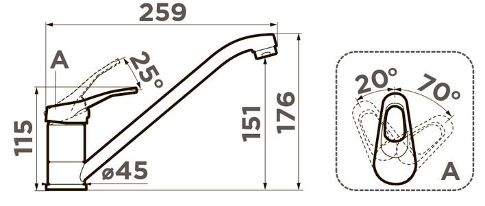 Omoikiri Kado C - схема с размерами версия 2 к смесителю на разных языках на Hausdorf