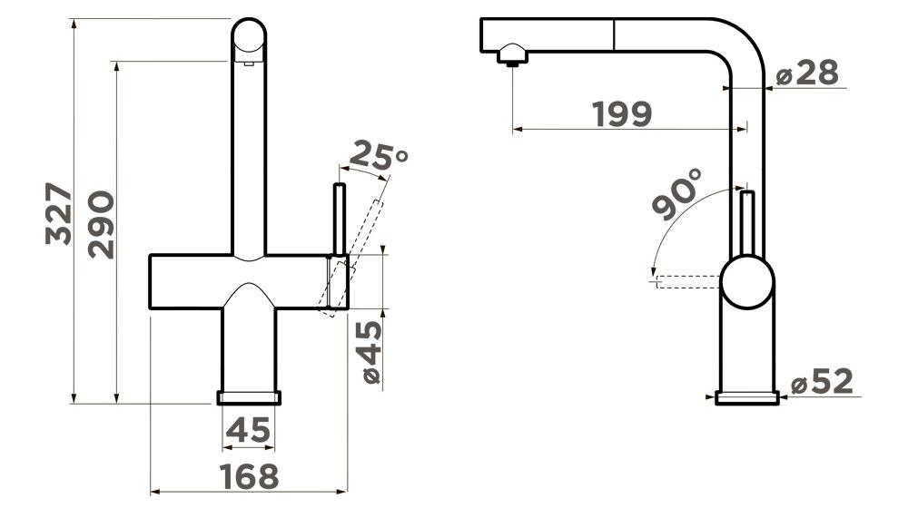 Omoikiri KARATSU-S LG - схема с размерами к смесителю на разных языках на Hausdorf