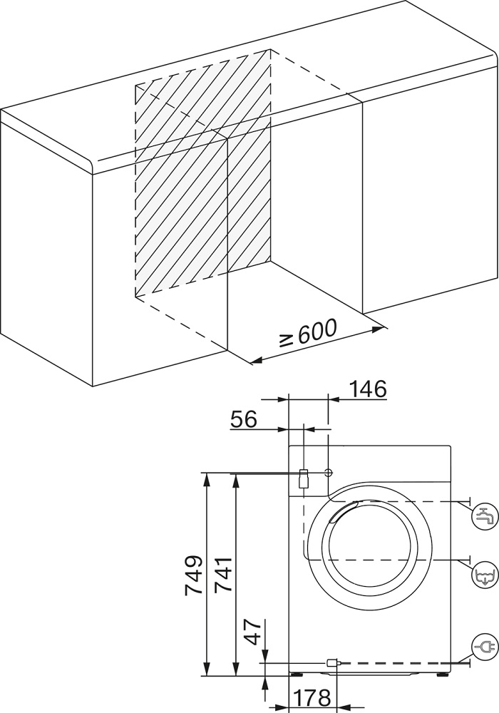 Miele WEG365 WCS новый с витрины - схема с размерами (2) к стиральной машине на разных языках на Hausdorf