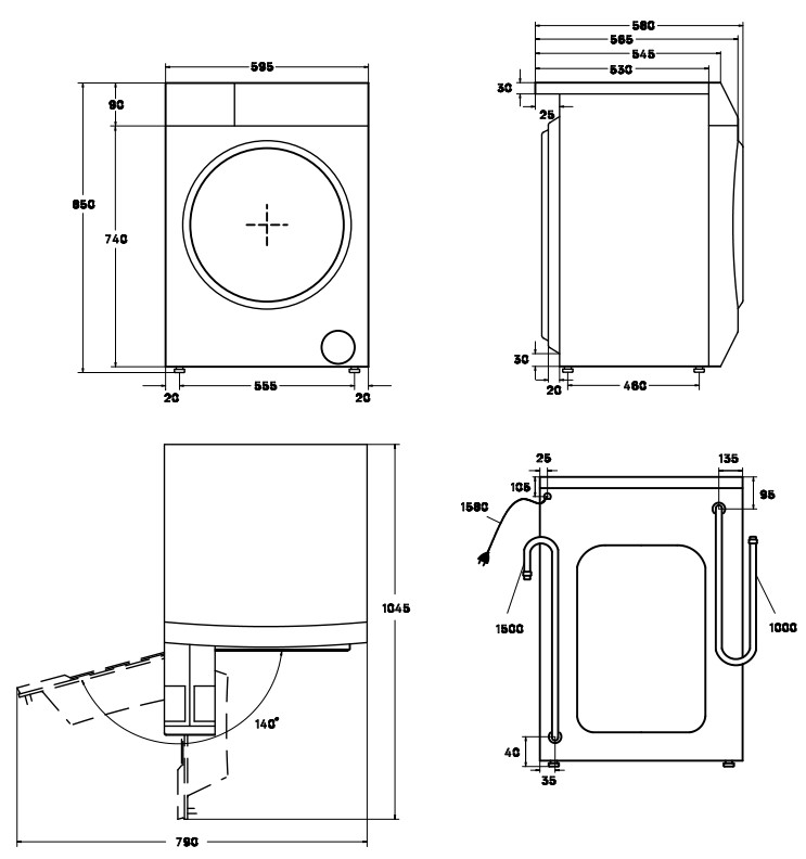 VARD VWF514 - схема с размерами версия 2 к стиральной машине на разных языках на Hausdorf