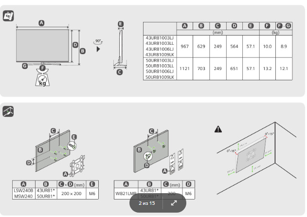 LG 50UR81009LK - схема с размерами версия 2 к телевизору на разных языках на Hausdorf