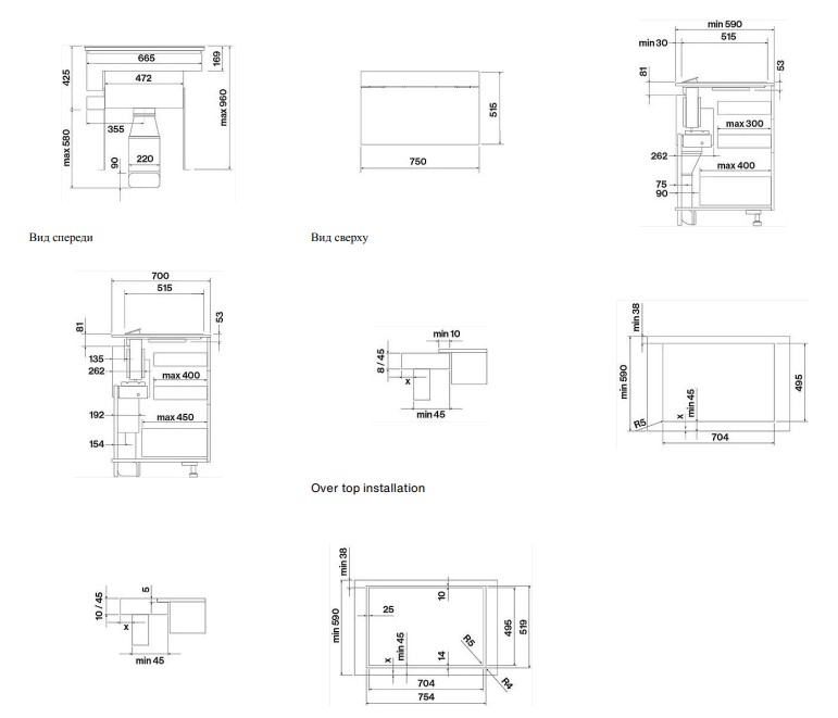 Falmec BRERA 75 VETRO NERO - схема с размерами версия 2 к варочной панели на разных языках на Hausdorf