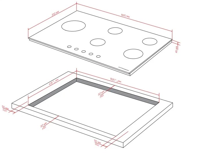 Kuppersberg FG 96 BG - схема с размерами версия 2 к варочной панели на разных языках на Hausdorf
