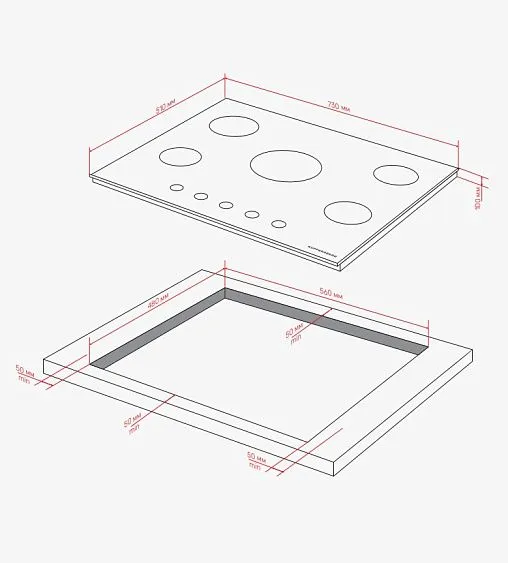 Kuppersberg TG 72 B - схема с размерами к варочной панели на разных языках на Hausdorf