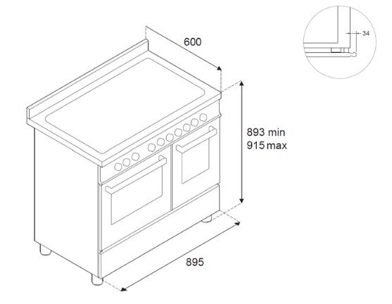 Bertazzoni HER95I2EXT2 - схема с размерами версия 3 к варочному центру на разных языках на Hausdorf