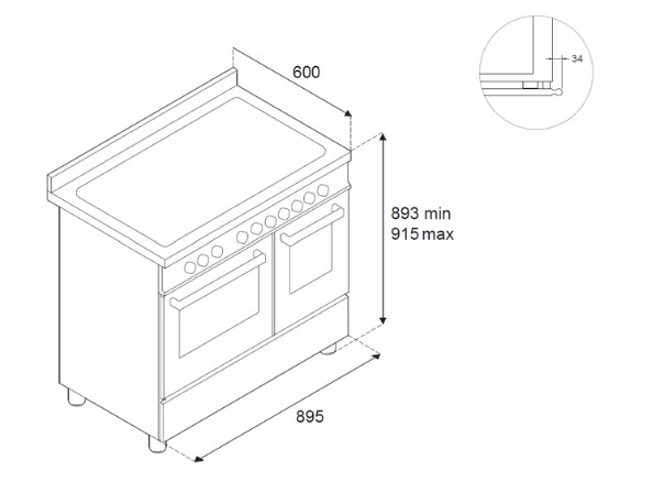 Bertazzoni HER96L2EAVT2 - схема с размерами версия 3 к варочному центру на разных языках на Hausdorf