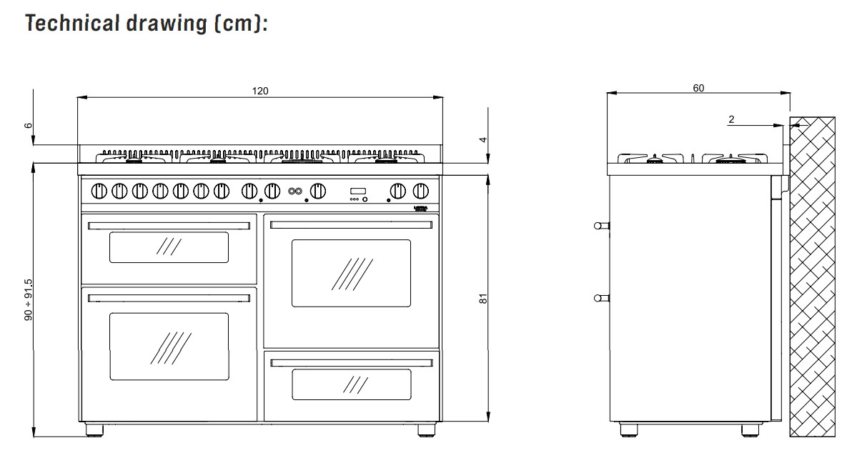 Lofra PR126SMFET+DMFT/2AEO - технический чертеж к варочному центру на разных языках на Hausdorf