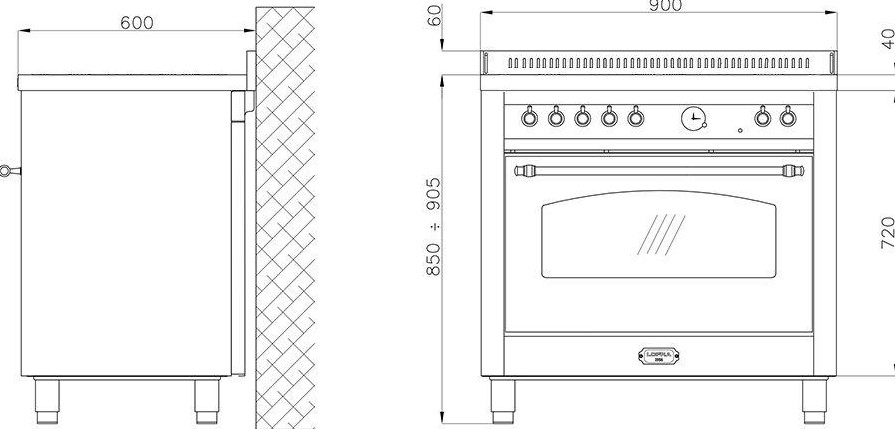 Lofra RNMG96MFT/5I BRONZE - схема с размерами к варочному центру на разных языках на Hausdorf