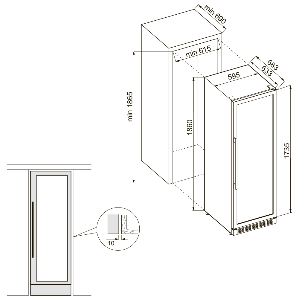 KRONA BADEN 186/165 BL - схема с размерами версия 2 к винному шкафу на разных языках на Hausdorf