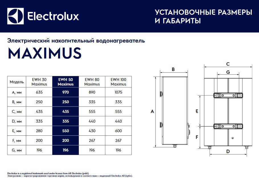 Electrolux EWH 50 Maximus - схема с размерами версия 2 к водонагревателю на разных языках на Hausdorf